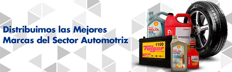 Distribuidor oficial de Lubricantes Shell, Baterías Fulgor, Fluidos y Filtros Qualid, y Cauchos Qualid.